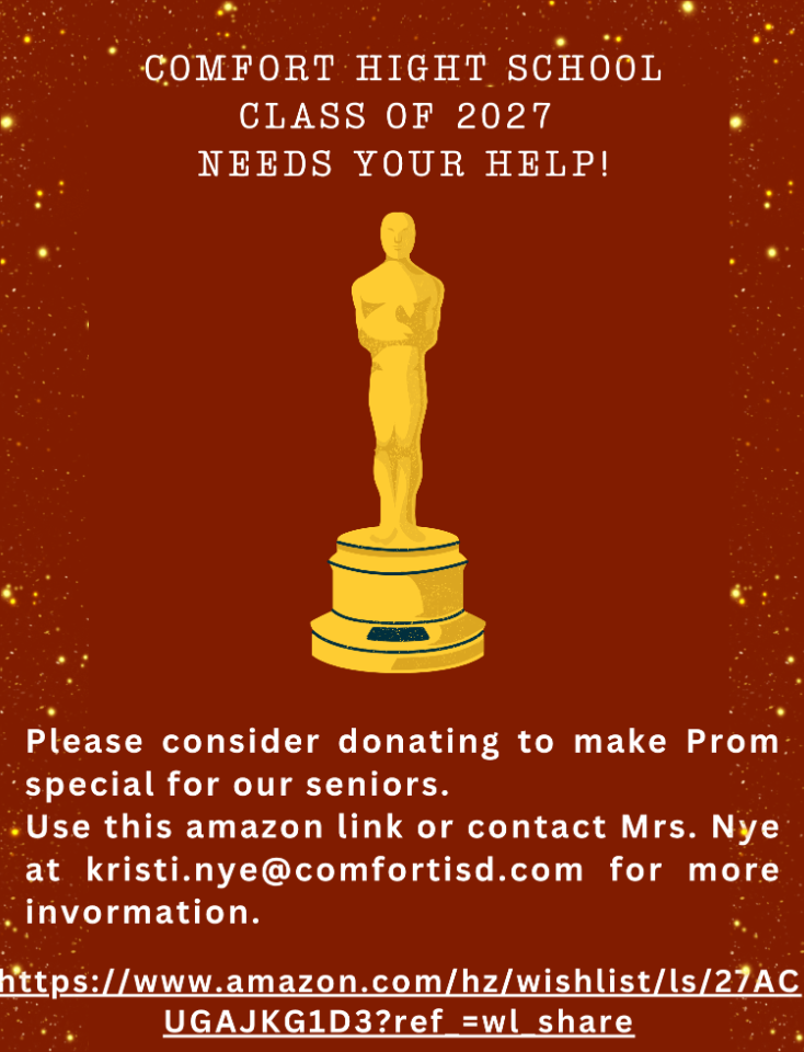 Wednesday: Comfort Way Award @ 7:30 in HS Library